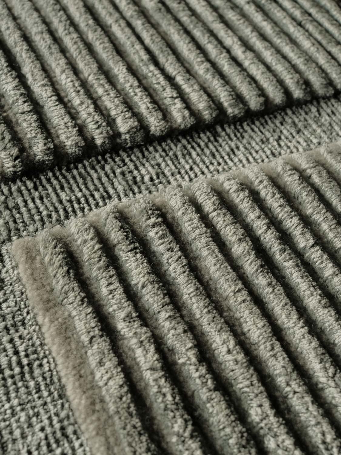 The inspiration behind the “Sintesi” collection comes from the reinterpretation of basic geometries such as cubes, rectangles and slabs, with a clear architectural memory, to characterize the environment with a functional modular continuity. The repetitive arrangement of these blocks accentuates the simplicity and uniformity of the shapes, while infusing a sense of rhythm and spatial progression. The main volumes made of New Zealand wool are intersected by delicate luminous corridors obtained through the use of bamboo silk and precise carving at various heights.